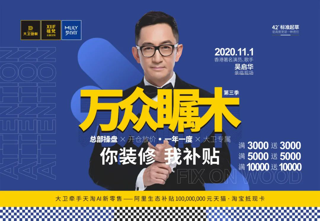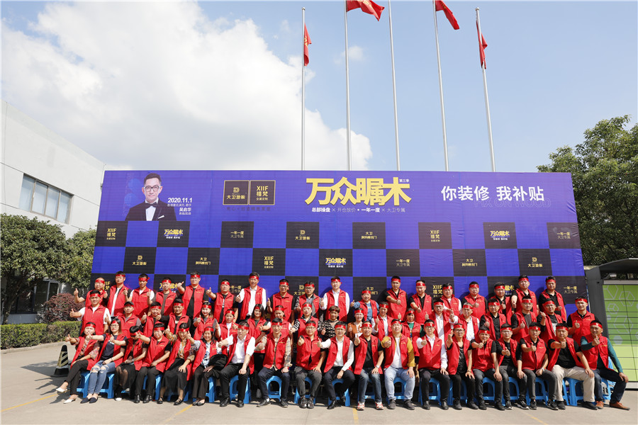 10月10日,大衛(wèi)工廠總部,萬眾矚木(第三季)“你裝修 我補貼”啟動會正式召開!什么是萬眾矚木?這是大衛(wèi)品牌2018年起自創(chuàng)的“造節(jié)日”,活動時間為每年的11月。其核心是“兩品一促一服務(wù)”:品味“木文化”、品讀工匠精神、尊享年度大促,保養(yǎng)服務(wù)月活動?;菝裥袆?,千店同步,感恩答謝客戶!