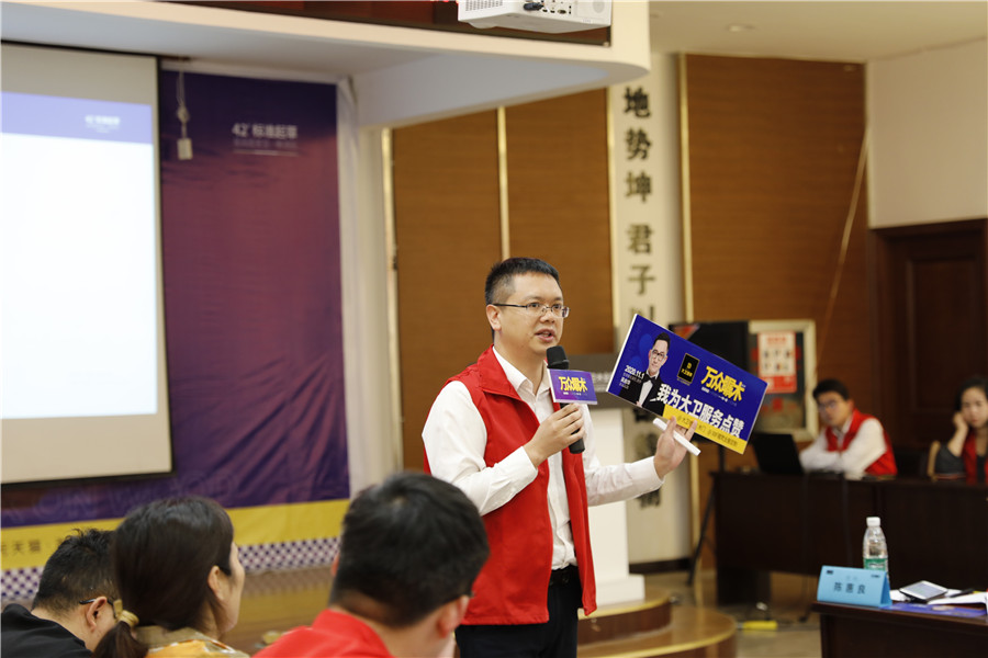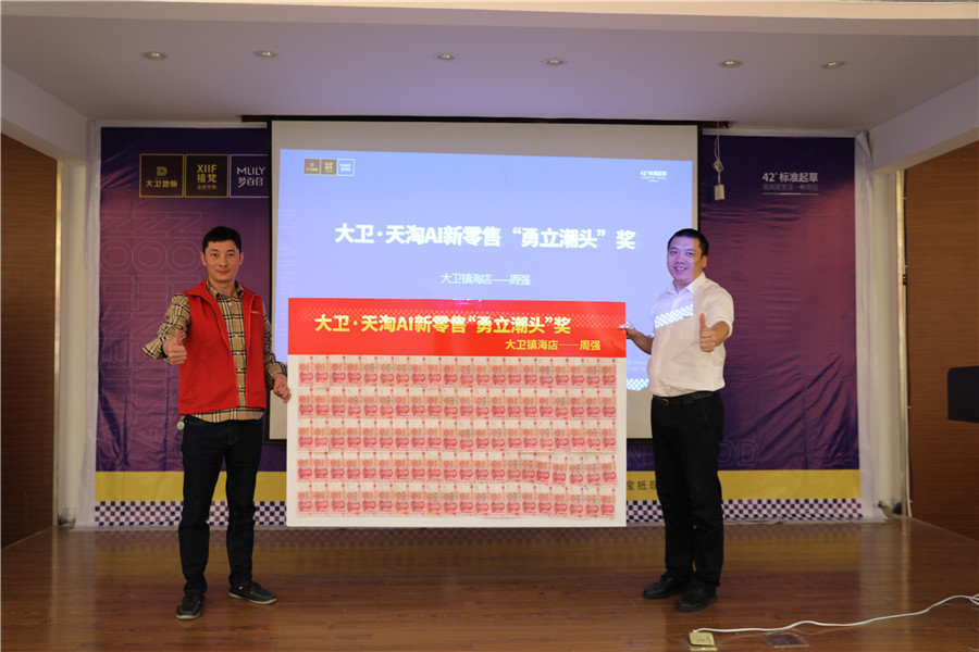 營銷部總監(jiān)蔣總為大衛(wèi)鎮(zhèn)海店周總頒獎,周總分享了精彩的心得及自身經(jīng)驗,讓在座的大衛(wèi)家人們借此機(jī)會互相取經(jīng),取長補短,受益匪淺,贏得在座的贊聲一片。